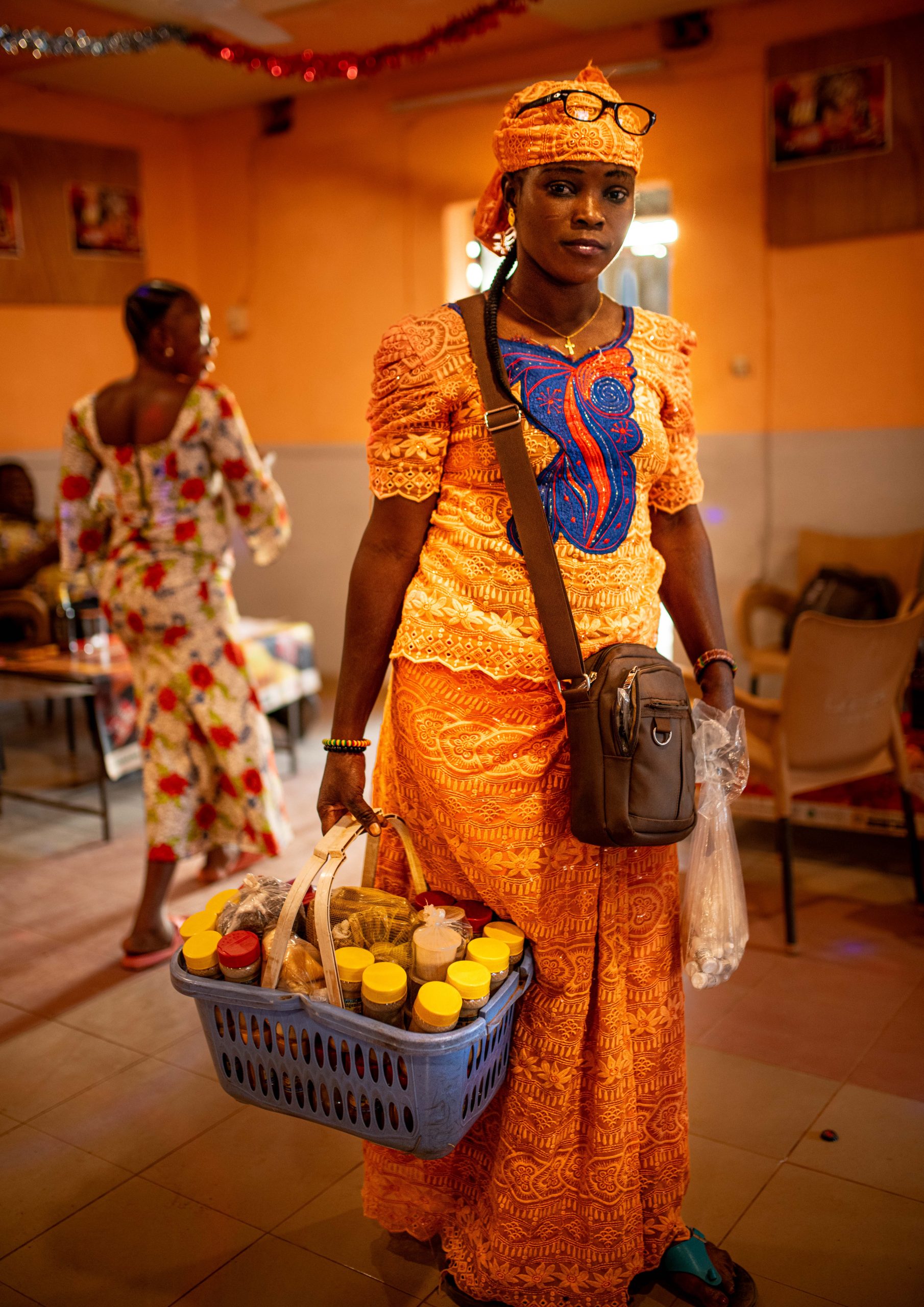 Les débuts n’ont pas été faciles. J’ai commencé avec 5000 francs offerts par mon grand frère. Je vendais mes produits en vélo, puis j’ai pu acheter une moto après 9 mois. Quand j’ai eu une nouvelle moto, j’ai donné l’ancienne à mon mari et j’ai continué à travailler avec mon vélo. Aujourd’hui, je vends des savons, des épices, et d’autres produits, et je prends des commandes de mes clients.