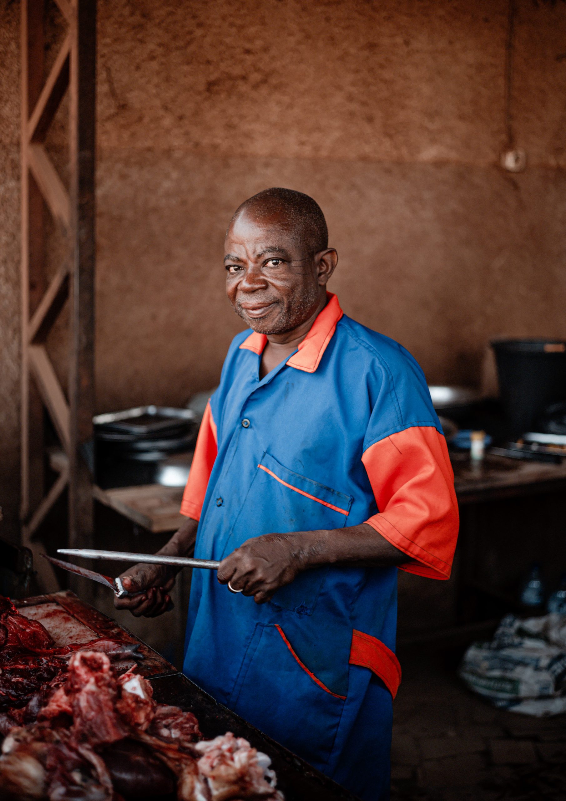 Moi, c’est Fulgence KYENDREBEOGO, fils de Kos Naaba. (Le Kos-Naaba est le ‘chef des bouchers’ dans le quartier, un rôle important dans la communauté Mossi). Je travaille dans le commerce, et plus précisément dans la boucherie spécialisée dans la viande de cheval. Notre activité est une tradition familiale, transmise de génération en génération. Je suis entré dans la boucherie après la mort de mon père, le 31 décembre 2010. À l’époque, je travaillais à SOFA en tant que technicien après une formation au génie militaire. Quand mon père est décédé, j’ai quitté mon travail pour reprendre l’activité familiale, car personne d’autre n’était disponible pour le faire.